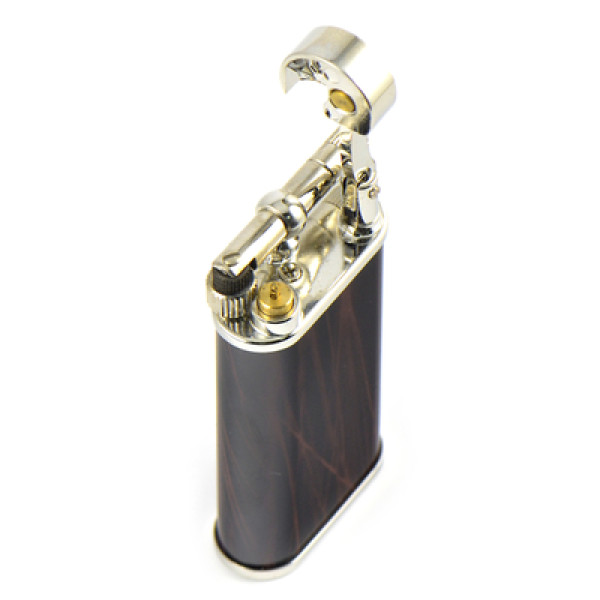 Классическая, газовая, трубочная зажигалка с кремниевым поджигом.